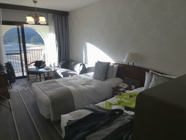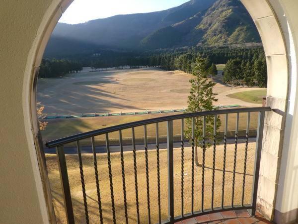 「箱根仙石原プリンスホテル」チェックイン。378号室。 部屋はゴルフ場隣接のホテルらしく目の前にコースがひろがっている。