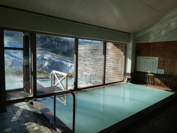泉質:酸性-硫酸塩・塩化物泉(酸性低張性高温泉)泉温:55.7℃(源泉)pH値は2.1 |