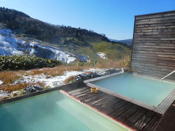湯船で変わる湯の色・濁り・湯華を自然のままにお楽しみください。自然湧出硫黄泉露天風呂の離れ家を再開。貸切江戸風呂「正徳の湯」につぎ、ご好評につき貸切半露天風呂を再開しました。 |