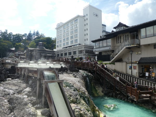 万座温泉は海抜1,800㍍。緑に囲まれた上信越高原国立公園内の中の高山温泉。源泉は硫黄泉で約80度の高温。 硫黄成分含有量日本一、温泉湧出量は1日540万リットル。すごい!匂いは強いが肌には優しい、湯桶に10杯くらい薄くなった髪にかけ流してみた、すると早速効果だろうか? 気になっていた髪の痒みが消えた....ような気がする。 |