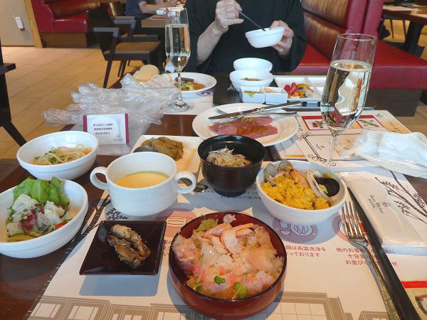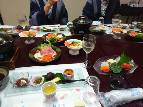 3月2日 午前八時~ホテル談露館で朝食。食事処のテーブル席は、距離を広く開けて用意されている。黙食を無言ですすめられているようだ。 |