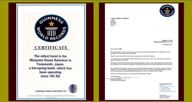 ![]() 慶運館は世界最古第一位のホテルとしてギネス認定されている。第二位は粟津温泉/法師⇒ |