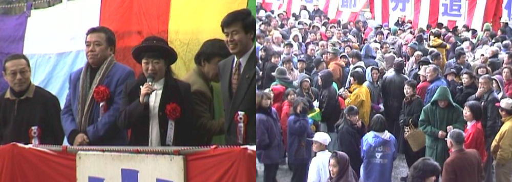 ![]() JRCM 村上 喜っ川前で 吉永小百合さん |
