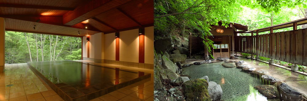 ![]() 野天風呂「白鳳の湯」 ![]() 貸切露天風呂・瀬音 他にもう一つ |