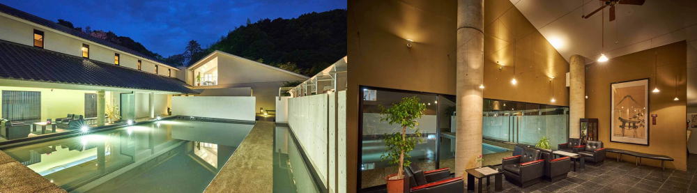 | ロビー・ラウンジとそこから眺める水面鏡 |