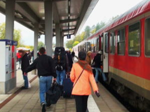 フッセン駅に戻ると、昨日 ローデンブルクからロマンチック街道バスで一緒だったご夫婦と再会する。ご夫妻とはさっきマリエン橋近くでも会ったが城を見学しないで帰ると話すと笑われた。お二人はここでお昼を食べてミュンヘンに行くということなので駅で別れる。 |