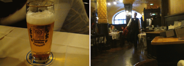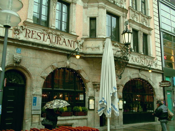 ホテルに一度戻り休憩してミュンヘンの街歩きに出る。ミュンヘンは世界有数のビールの産地なのでここでビールを味わわなければとアウグスティーナという老舗ビアレストランに入り夕食をする。 |