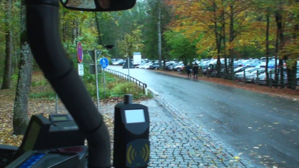 10:55分フッセン駅に着くと乗客は皆急ぎ足でバス停に向かう。 今日はバイエルンチケットなので列車もバスも乗り降り自由なので便利だ。電車を降りるとほぼ全員がお城に向かうようで、バス停ではすでに満員の乗客を乗せた先着のバスが動き始めていた。次のバスも後に続いていてバイエルンチケットを提示して乗車すると最前列に座れる。バスはラッシュアワーのように超満員状態で動き始めた。 |