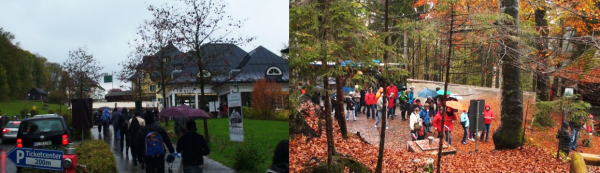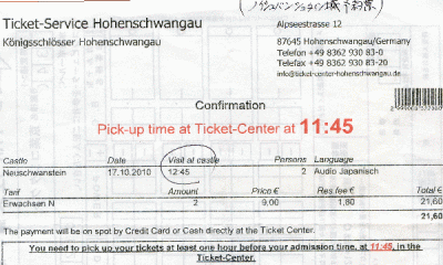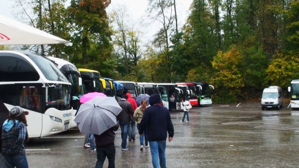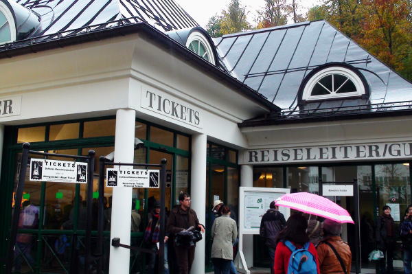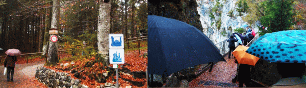 10分くらいでホーエンシュバンガウ停留所に到着しそこからチケットセンターへ歩く。こんな悪天候にもかかわらずチケットを求める人が列を作っている。ノイシュバンシュタイン城予約券をもっていたがお城の中にはそれほど興味もなくマリエン橋からお城を見るだけにする。 |