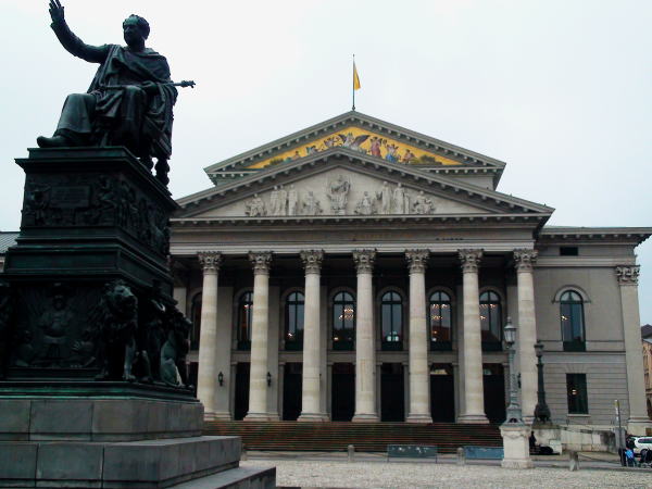 新市庁舎前を通り左に折れていくとバイエルン国立歌劇場に出る。 第二次大戦で破壊された歌劇場は世界三大歌劇場の一つで建物は戦後再建されたもので横にはヴィッテルスバッハ家の宮殿のレジデンツがある。 |