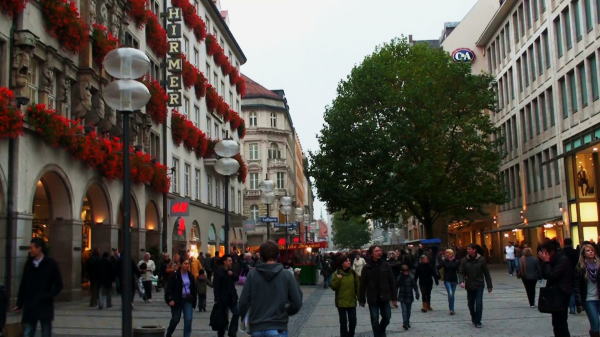 胸に熱い思い出を残しながらオリンピック会場を後にし地下鉄に乗ってミュンヘン中央駅に戻る。 オリンピック会場から帰りホテルで休憩した後、今度の旅行最後の観光にミュンヘン街歩きにでる。 中央駅前の大通りをカール広場まで行き、カール門から先はミュンヘン一の繁華街ノイハウザー通りになる。 |