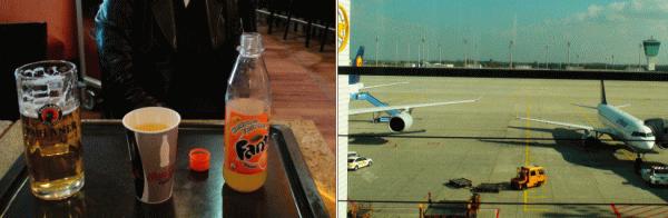 搭乗時間まで空港のカフェに入る。ビールとファンタが同じ料金、ドイツはビールが安くて美味しかった。 |