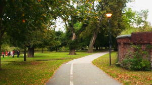 | 今日はリバプール移動の途中寄り道して『嵐が丘』のブロンテ姉妹の住んだ町ハワースによっていく楽しみな行程だ。外はまだ真っ暗な5:00に起きて荷造りして7:00ホテルを出発する。何度もあるいたウース川沿いの遊歩道は早朝で人も少ない。又くる事もないだろう道を名残惜しみつつ駅へとゆっくりと歩く。 |