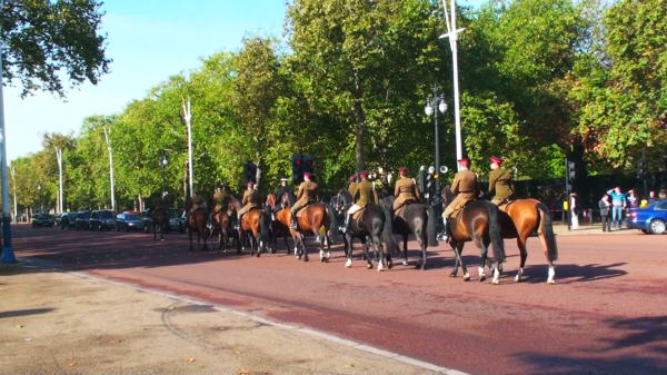 ザ・マルには騎馬警官がさっそうと宮殿に向かって進んでいく。 |
