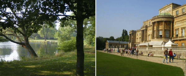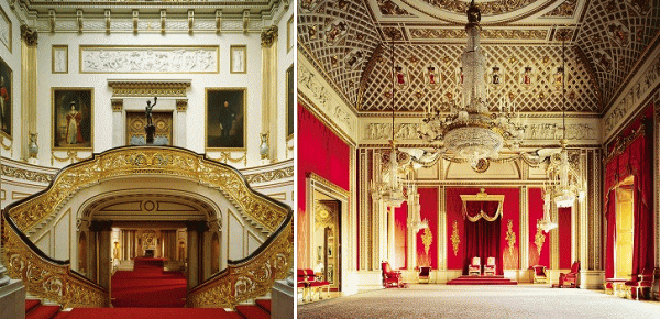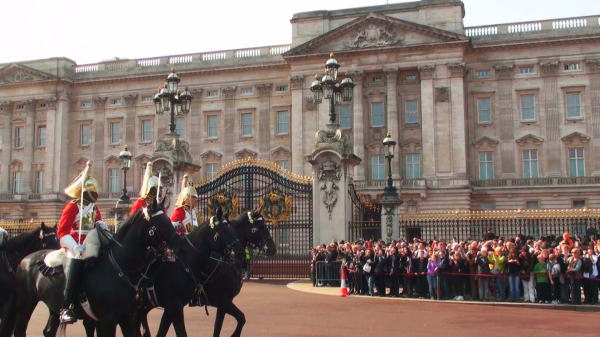 約1時間半かけてゆっくり見学する。中は撮影禁止だったがバッキンガム・ウェブサイトから得た画像で宮殿内部はこんな部屋ばかり。エリザベス女王が日常生活の場としておられる場所を見る事が出来る。ロイヤルコレクションといって歴代の王が集めた名画や彫刻は内容・数ともに大美術館並だ。 |