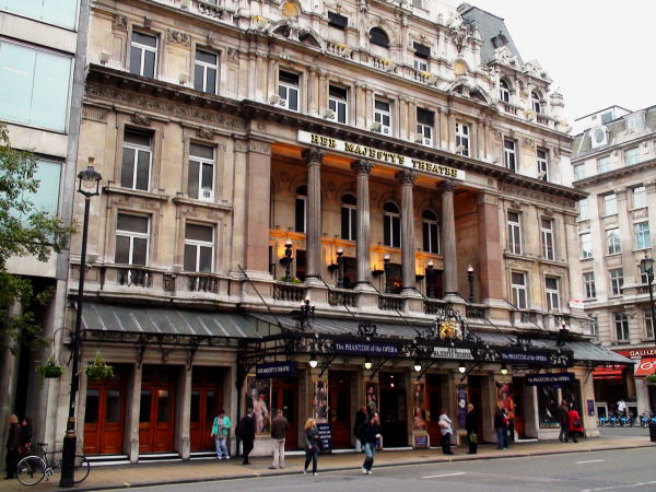 ロンドン塔見学の後一度ホテルに戻る。 19時45分開演のピカデリーサーカス近くにあるハーマジェスティ劇場『オペラ座の怪人』を観にいく。劇場はそれほど大きくはないが歴史的建造物で想像していた通りで雰囲気はなかなか。 予約した席は最前列の中央でオーケストラボックス前。少し前過ぎる感はあったが、開演後は目の前の指揮者や俳優の息づかいから汗の一つ一つが見れてその熱演ぶりには感動した。 |
