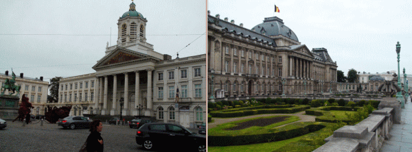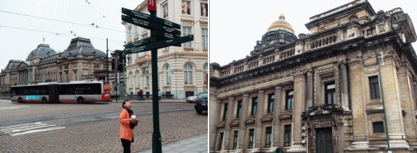 小便小僧前から裏道を地図を片手に歩いてロワイヤル広場に出る。広場周辺では初めブリュッセル公園を散歩する。 続いて王宮〜王立美術館〜国会議事堂〜ノートルダムデュサプロン教会〜最高裁判所〜ブラール広場へ。広場前の展望台からは市内が一望できる。 |