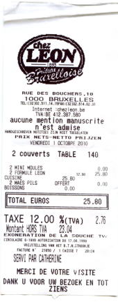 ![]() グランプラスから路地を入り直ぐのレストラン・レオン |
