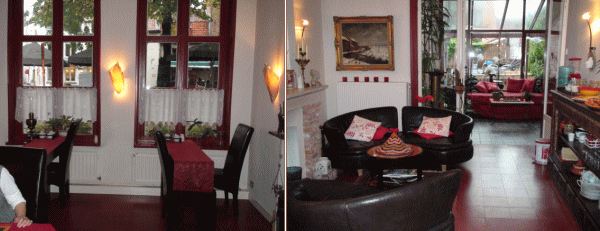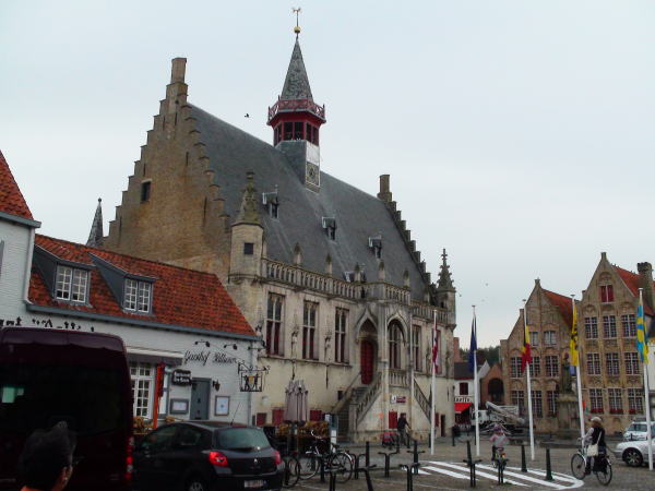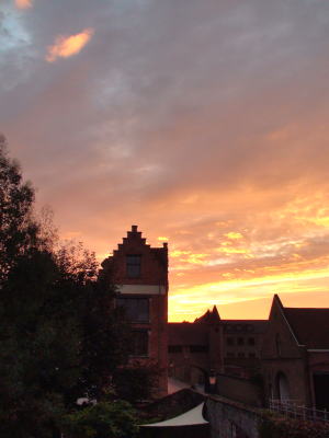 10月5日出発の朝ブリュージュの空は朝焼けに染まっていた。きょうはアントワープからオランダのアムステルダムへ向かう。 |