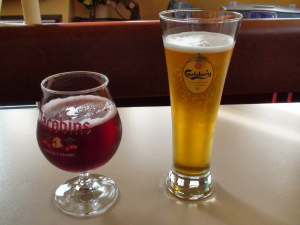 帰りの船で下の船室でベルギービールを注文飲みながら帰る。日本にはないフルーツビールは不思議な味だった。 |