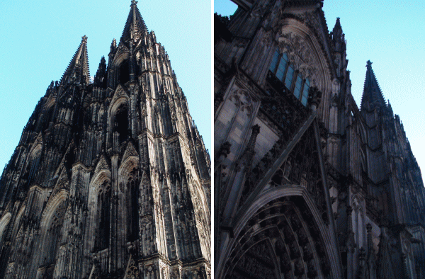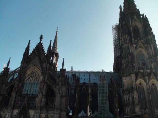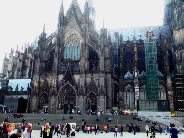 アムステルダムからICE 2時間40分でケルンに到着。 駅から一歩出て直ぐ左に聳え立つケルン大聖堂のあまりの大きさにまずびっくり! ミラノのドゥ-モを見た時のような感動を覚える。 |