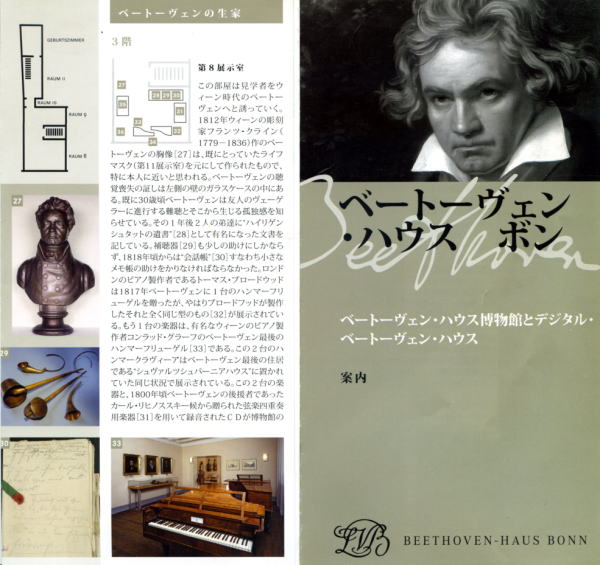 番号の通り順路に従って見学していく。 ピアノ、バイオリン、楽譜、補聴器、ハイリンゲンシュタット遺書の家で書いた文章などベートーベンの遺品が多数陳列され、今まで遠い遠い存在だった楽聖ベートーベンが人間ベートーベンとして身近に感じられた。 |