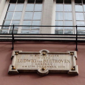 ベートーベンの生誕の地「ボン」はケルンから電車に乗って20分くらい。 東西ドイツに分断された時代は西ドイツの首都だったというが駅から街は本当に素朴な小さな町でとても首都のあった町とは思えない。 |