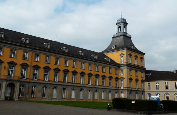 ベートーベンハウスから歩いて駅へ行く途中のボン大学を見学する。ボン大学は立教大学と交流協定が結ばれ立教の学生さんも毎年派遣されている様子。孫のよし君は今、立教小2年生で順調に行けば立教大学に進むだろうか、なにか親近感を覚えながら見学する。 |