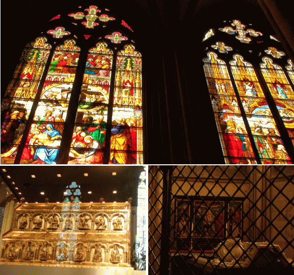 13世紀に作られた黄金の棺には、キリストが生まれた時、星に導かれキリストを拝んだとされる「東方の三博士」と呼ばれる、3人の遺骨が納められている。 |