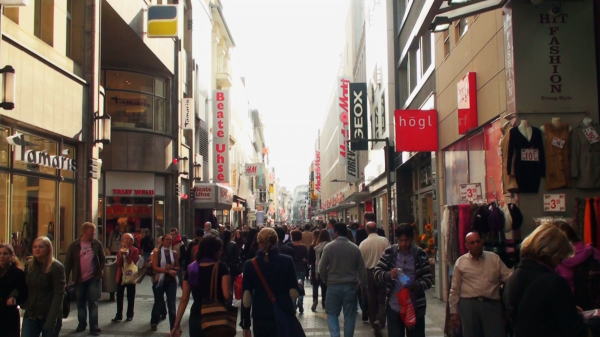 大聖堂からケルンの繁華街にでると戦災で焼けた町なので歴史的建造物は見当たらない。 ごく普通の商店街だ。この先にあるデパートでドイツビールを買う。 |