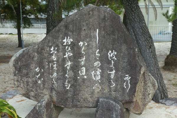 『波よする しらゝの濱の からす貝 拾ひやすくも おもほゆるかな』西行歌碑