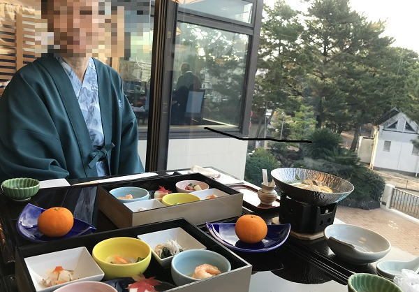 12:00白良荘グランドホテルに戻りお昼は伊賀上野で買った和菓子の残りを食べる。