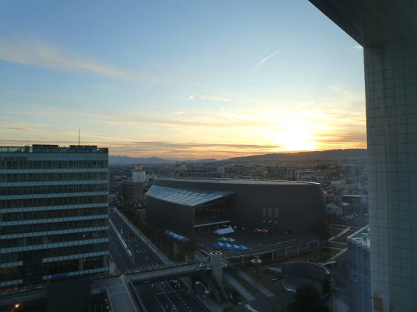 部屋から西側の市街向こうに夕陽が沈み綺麗。