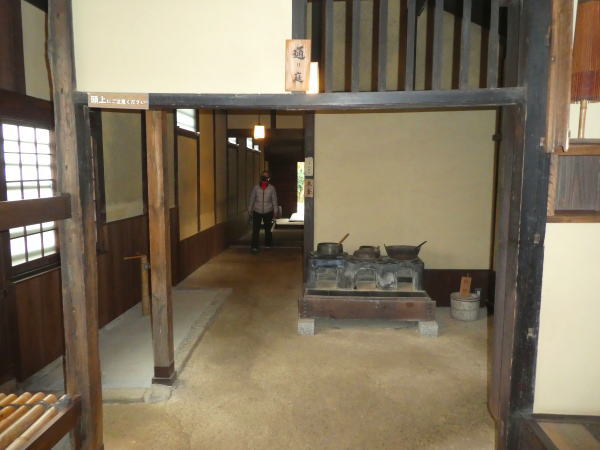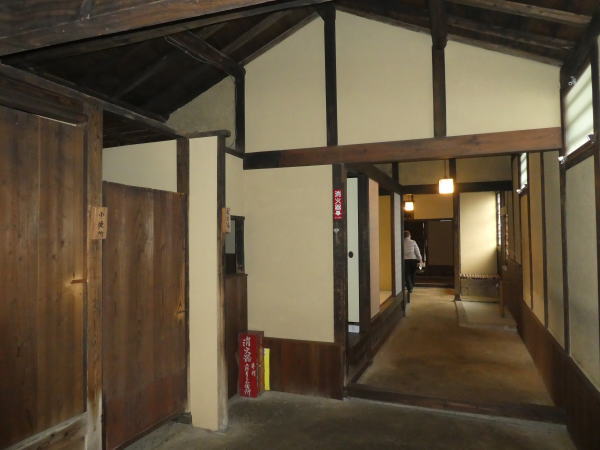 回廊は梁が渡されている長さは幅3.7㍍ルで、外側の柱と柱は出入り口を除いてすべて連子窓で閉ざしている。