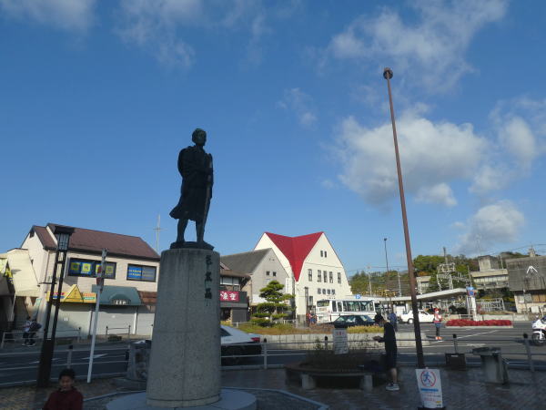 紀伊田辺駅でsuicaにチャージしながら、40分余り待つ。待ち時間に駅前に出ると、武蔵坊弁慶像が建つ。弁慶はこの辺りが出身と言われるが詳細は不明。