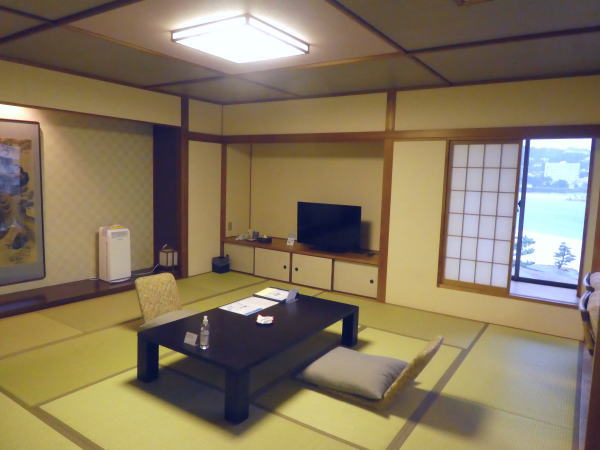 着替えて2階と一階男女別大浴場へ。まだ空いていてゆっくり白浜海岸を眼前に見ながらのお風呂。ぬるぬる感の強い泉質。部屋に戻って休憩。