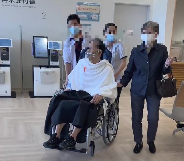 ![]() 車いすで術後初めての散歩 |