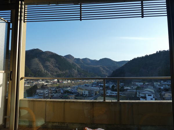 | 今日は朝から快晴。 部屋の正面に蔵王連峰・最高峰は熊野岳がきれい |