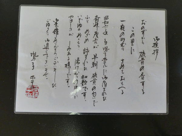 | 『おのずから 硫黄の香するこの里に一夜のねむり さめておもへる』 | |||||||||||||||||||||||||||||||||