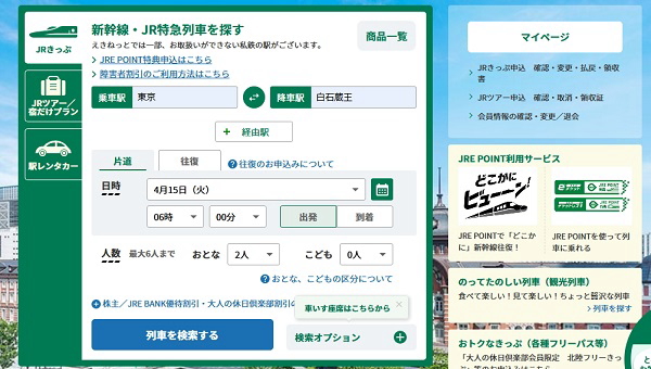 | 往復の新幹線は"えきねっと.トクだ値切符"を購入 | |||||||||||||||||||||||||||||||||