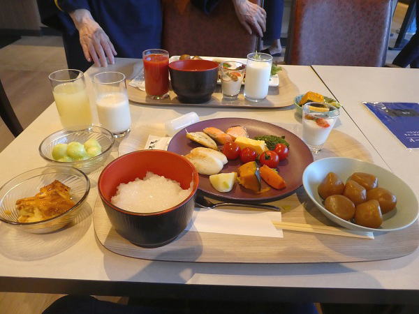 | 8時〜朝食は一階レストランでブッフェ。持参した減塩醤油とお酢を持っていく | |||||||||||||||||||||||||||||||||