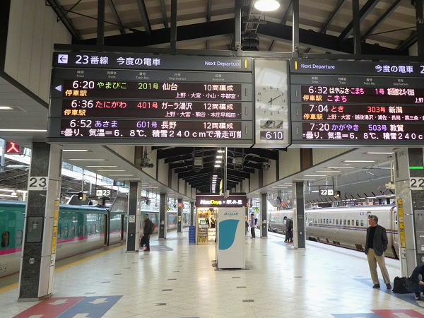 | 東京駅 6:20分発 新幹線 "やまびこ"に乗車 | |||||||||||||||||||||||||||||||||