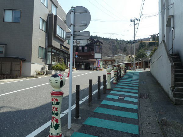 | 4月17日、午前10時チェックアウトして、電車の時間まで鳴子温泉を少し歩く。 |