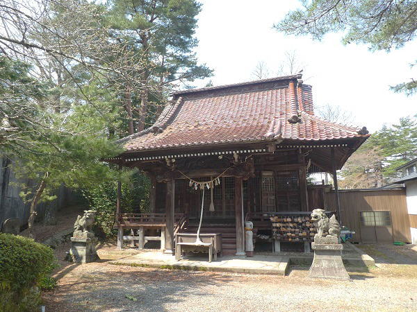 | 白石城を見上げる一角にある「神明社」を先に お参りする。 この神社は創建が大同2年(807)天照大御神を主祭神としていて、伊達政宗公と、家臣で白石城の城主となる片倉景綱(小十郎)が合祀されている。 |