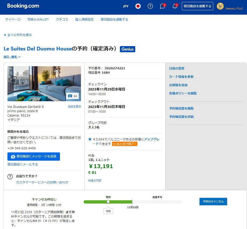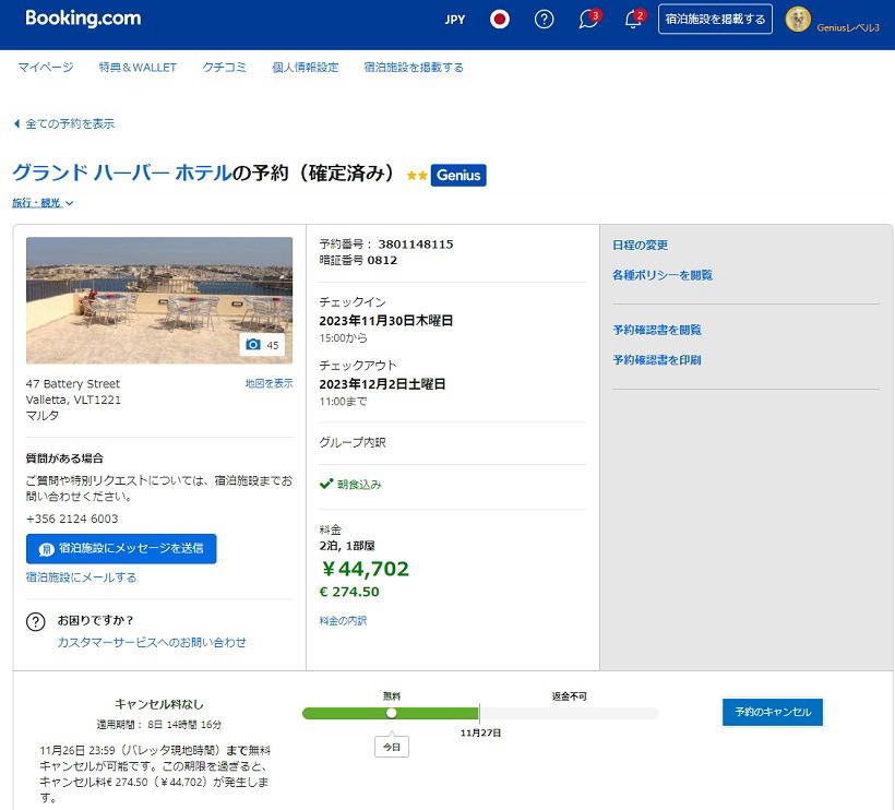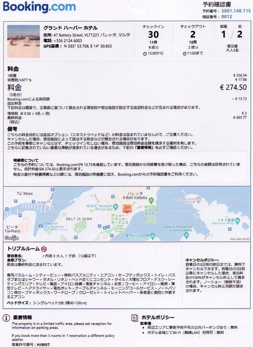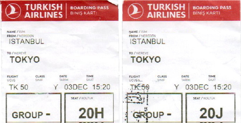11月23日 Narita~Istanbul~Rome 12月2.3日MaltaIstanbul~Narita:航空券 |