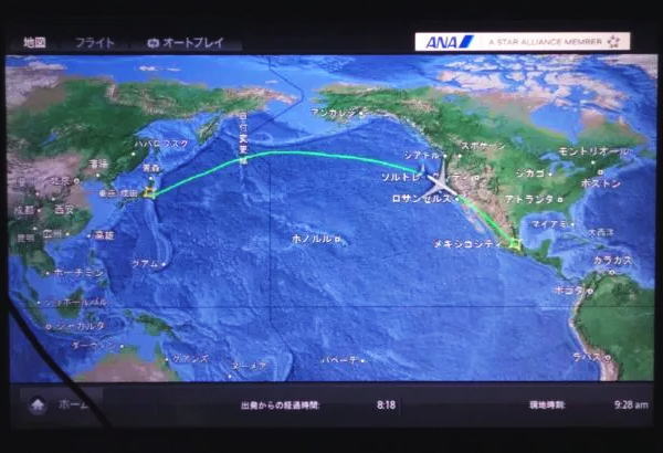 | 4月13日(月)成田空港からメキシコシティ国際空港までの飛行距離は、約11,300km。所要時間は、今日乗る往路(成田発)は約12〜13時間、復路は乗らないが(メキシコ発)は偏西風の影響で約14時間〜15時間もかかる。 メキシコシティ空港は富士山5合目に匹敵する約2230mの高地にある。標高が高い空港は、コックピットの計器に表示される速度が同じであっても、実際の速度は、標高が低い空港と比べて速くなるので着陸には経験と高い技術が必要らしい。 |