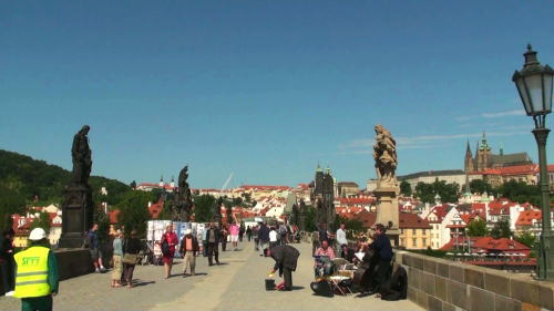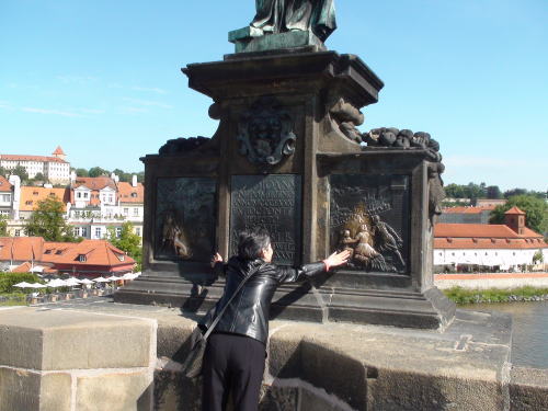 昨日は眺めただけの橋の欄干に並ぶ 30聖人像 を一つづつ写真におさめながら橋を歩いてヴルダヴァ(モルダウ)川を渡る。