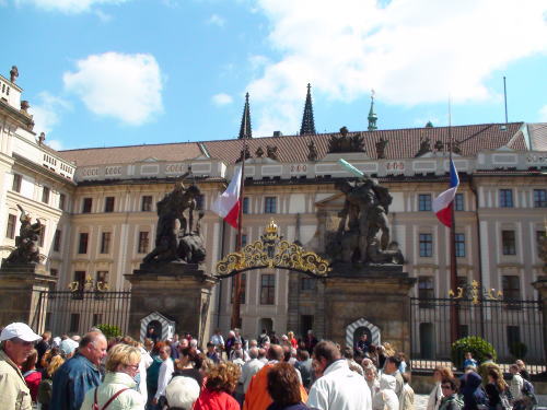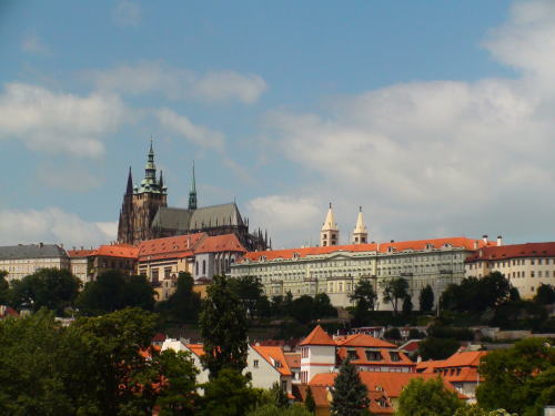 衛兵交代を見た後城に入る。聖ヴィート大聖堂は入場者が長い列をなしているので中には入らず外観を眺めて脇の道を奥へ、庭園にでてそこからのプラハの眺めは最高で飽きることなく見入ってしまった。