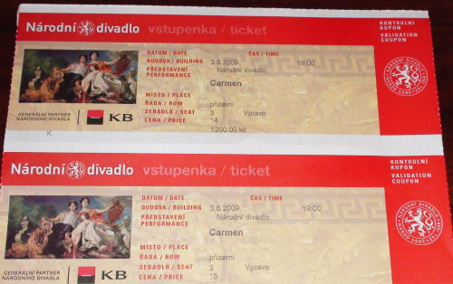 ベンチから先ほど見てきたプラハ城を眺めながら休憩して、川沿いの遊歩道をカレル橋方向に歩き国民劇場のチケットを受け取りに行く。劇場横のチケットセンターのような事務所を尋ねながら見つけ予約書を提示すると5月18日までに受取り支払うという規約があってそれを見落とししていた。インターネット予約の際カード支払いすべきだった。