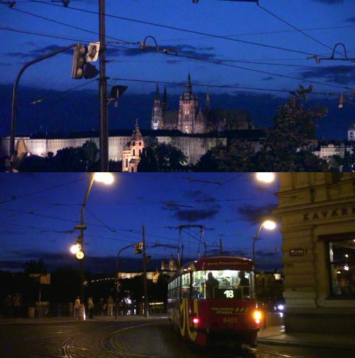 オペラの余韻を残しながら外へでるとトラムが走る先にライトアップしたプラハ城が聳え絵ハガキのような夜景だった。